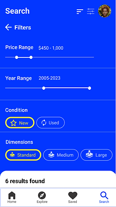 The users can personalize their searches by using filters like price, condition, and dimensions. This feature aligns with the need for an easy search process.