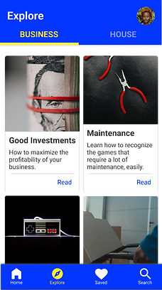 In the final high-fidelity prototype, I addressed all the errors of commission identified in the usability tests and improved the user flow for finding articles to improve the business and home arcade room, searching and saving games, comparing products, and archiving the created lists of games.